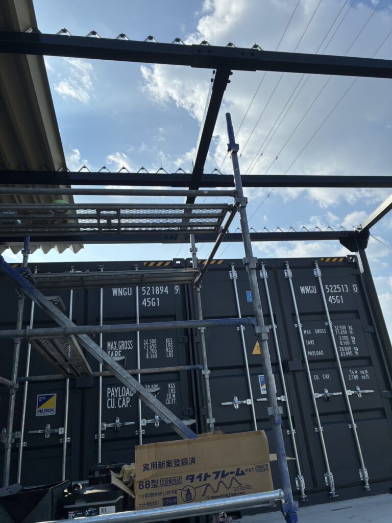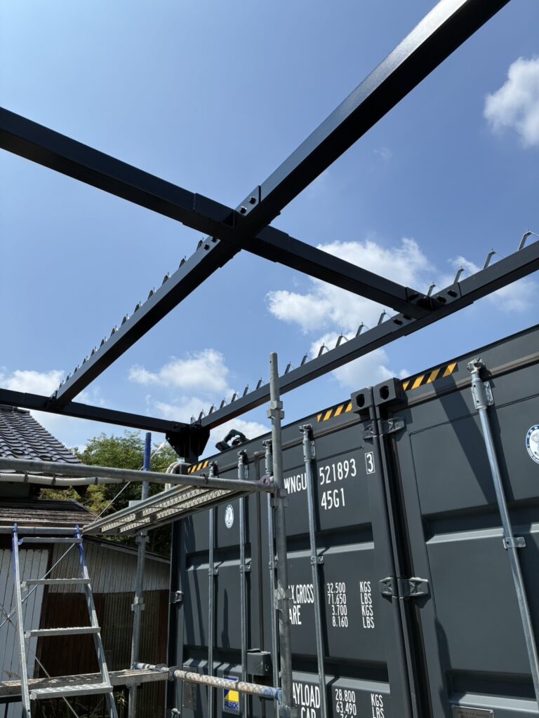屋根製作 屋根鉄骨 折半 パート3 2025年12月24日 最終更新日時 : 2025年12月24日 funato 折半(屋根工事)最終工事です 鉄骨にタイトフレームを取り付けていきます その後折半を取り付けて完成です いやーカッコいいです お仕事ありがとうございました。 出逢いに感謝 千寿技熔株式会社